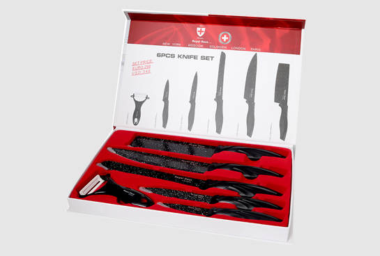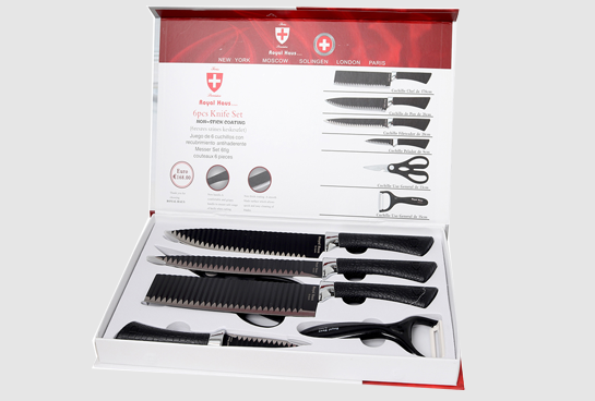 Este set de 6 piezas de la marca Royal Huas incluye cuchillo picador, de chef, serrado y pelador; así como unas prácticas tijeras de uso general y un pelador de cerámica. Afilado acero inoxidable ligero cada cuchilla está forjada con una hoja de acero inoxidable de alta resistencia y tiene un peso perfecto para largas preparaciones de comida.
