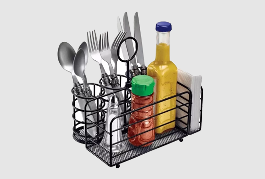 Tener todo a la mano en la mesa del comedor es muy práctico con los 5 compartimentos de este organizador de cubiertos, servilletas, salsas y condimentos. El Servi Mesa Black es de acero y tiene un diseño moderno. ¡Seguro se verá perfecto en tu hogar!